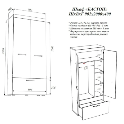 Шкаф Бастон (Эра) продается в интернет-магазине v-belgorode-mebel.ru по цене 12 434 руб. Есть доставка по Белгороду и Белгородской области. Возможность подъема на этаж и сборки уточняйте у менеджера по телефону 8(800)505-27-11.