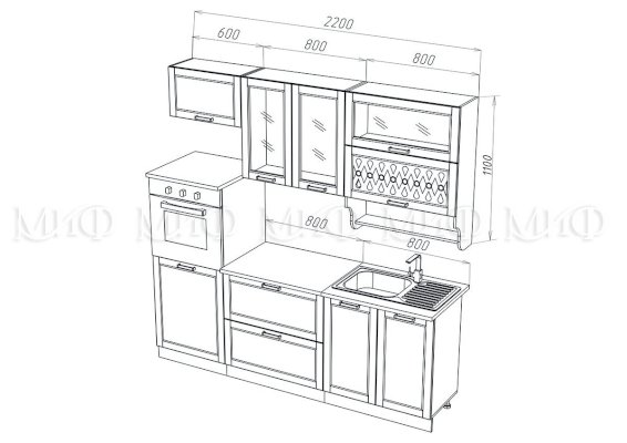 Кухонный гарнитур Милано 2,2 м Компоновка 3 (Миф)